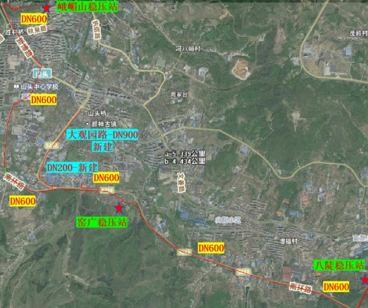 該項目位于山東省淄博市博山區,服務面積達30平方公里,覆蓋30萬人口,日供水能力為6 萬立方米。施工采用明挖開槽、拉管及內襯工藝,涵蓋六大核心工程,包括9940米的齊魯醫藥學院供水專線,3913米的英雄路等路段供水管線,2815米的秋谷路等區域供水管線,10109米的城區管道修復工程,10066米的柳杭路等主次干道管線改建,以及 7273米的八陡穩壓站至峨眉山穩壓站輸水管線改建。