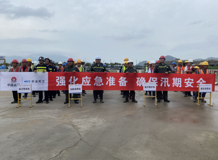 強化組織領導,構建責任體系。華南公司積極響應中冶天工號召,針對各項目特點,全面優化和調整各項目防汛防臺領導小組,確保責任層層傳導、任務逐級落實。各項目部組織全體管理人員深入學習《關于進一步強化汛期施工工地安全管理的通知》及《關于進一步做好“七下八上”防汛防臺關鍵期安全生產工作的通知》等重要文件,結合項目實際存在風險點,制定詳細防汛防臺工作方案,確保責任到人、措施到位,形成了“上下聯動、全員參與”的安全生產責任體系。
